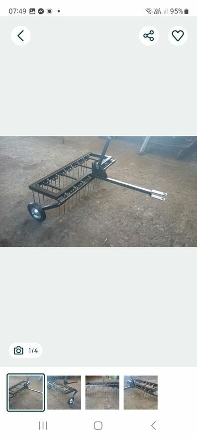 Posiadam na sprzedaż wertykulator do traktorka,kosiarki,qada, służący do napowietrzania trawnika oraz usuwania mchu z trawnika. Urzadzenie można rowniez wykorzystać do grabienia liści. Wykonany bardzo solidnie z profili o grubych przekrojach (nie chinszczyzna). Szerokość 120cm. Urządzenie wyposazone jest w kółka metalowo-gumowe, którymi za pomocą dźwigni można regulowac stopień wertykulacji, służą one również do transportu urządzenia. Urządzenie jest tak skonstruowane ze można na nie położyć obciążenie. ZAPRASZAM NA MOJE INNE OGLOSZENIASławomir